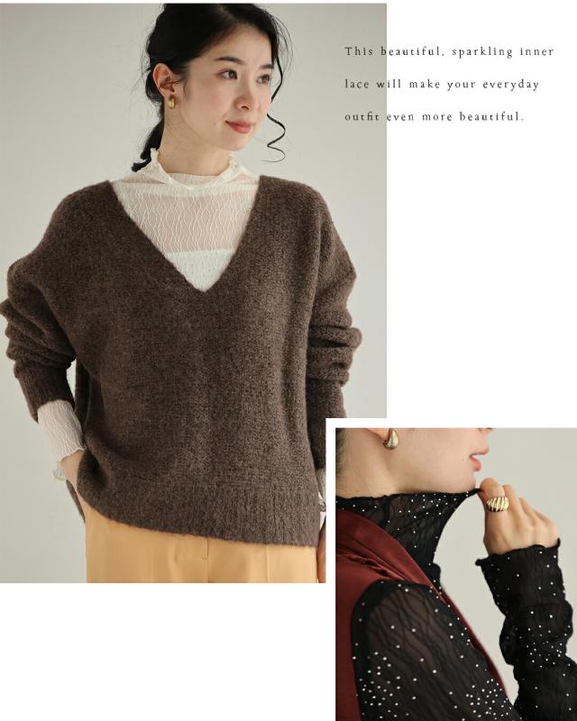 w61596ps 新作 新着 再入荷 CAWAII FRENCHPAVE フレンチパヴェ エレガント ベーシック カジュアル 可愛い かわいい カワイイ おしゃれ オシャレ お洒落 個性 個性的 定番 ベーシック 大人かわいい 大人可愛い 上品 女性らしい デザイン スタンダード ナチュラル きれいめ キレイめ シンプル フェミニン レディース レディースファッション 大人 ママ ミセス 30代 40代 50代 60代 華やか 席 着る 宝石 インナー トップス カットソー 長袖 ロング袖 タートルネック ハイネック ラインストーン キラキラ シアー素材 S M L 2L フリーサイズ フリー 小さめ 小さいサイズ 低身長 痩せ ほっそり 小柄 細身 標準サイズ 大きめシルエット 大きい 大きめ ビッグシルエット ゆったり F サイズ自由 春 秋 冬 春服 春物 秋服 秋物 冬服 冬物 着回し 重ね着 レイヤード 楽ちん 楽チン ラクラク 楽々 ストレッチ 伸びる 伸縮性 ブラック 黒色 ホワイト 白色 ワンカラー ワントーン 普段着 日常使い ヘビロテ 毎日着れる デイリー使い おでかけ 旅行 女子会 デート 買い物 大人女子