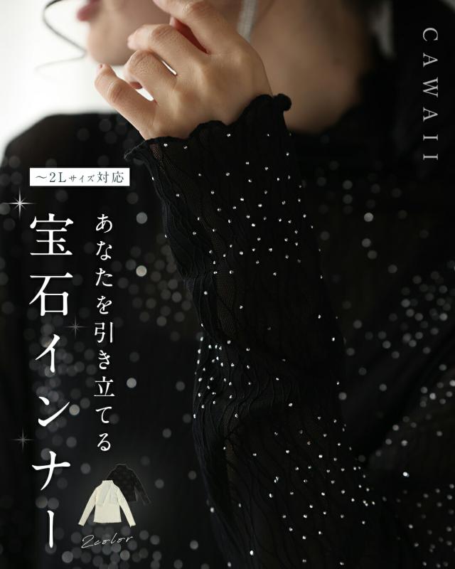 新作11月30日 あなたを引き立てる 宝石インナー cawaii w61596ps S~2L対応 トップス ストーン キラキラ シアー ブラック ホワイト 着回し 重ね着 レイヤード 大人女子 おしゃれ 伸縮 ロング レディース ファッション 大人 ママ ミセス 30代 40代 50代 60代