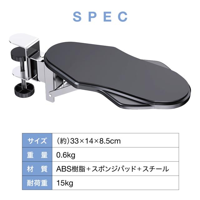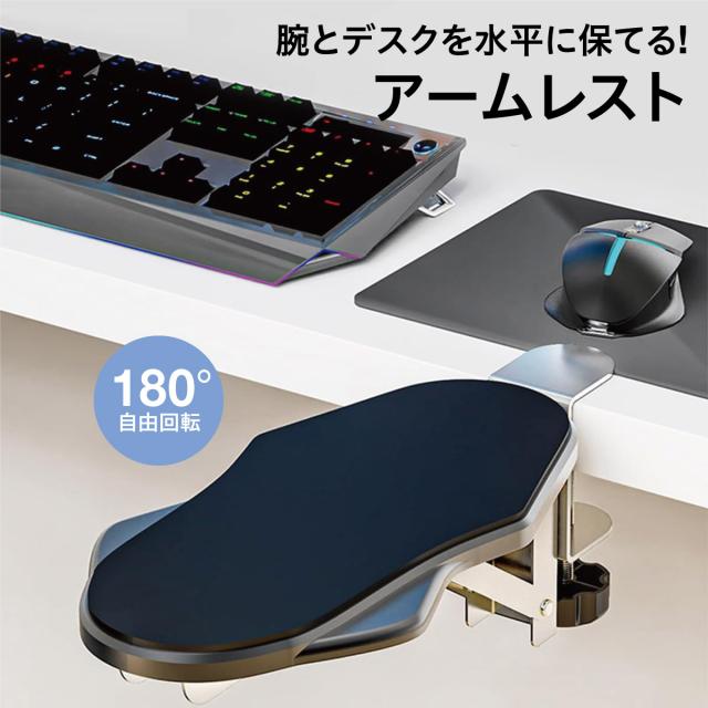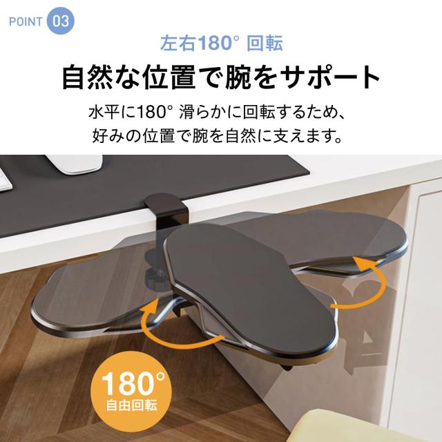 アームレスト デスク用 肘置き 180°回転 折りたたみ 取り付け簡単 肩こり軽減 マウス操作快適 耐荷重15kg 在宅ワーク PC作業 armrest