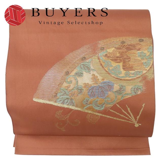 中古 名古屋帯 八寸 合成繊維 くすみブラウン ゴールド モダン お洒落 松葉仕立て 和装 呉服 和服 きもの レディース 女性