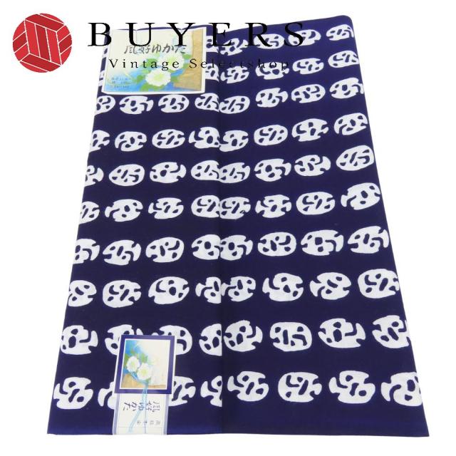 中古 未使用展示品 反物 浴衣 綿 ネイビー系 ホワイト 注染ゆかた 高級本染 和装 呉服 和服 きもの レディース 女性