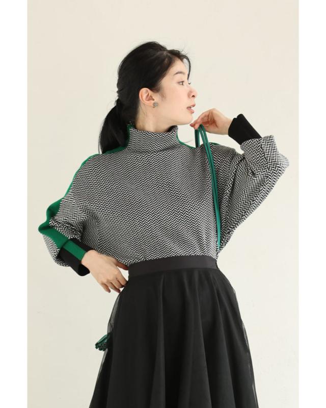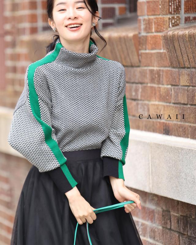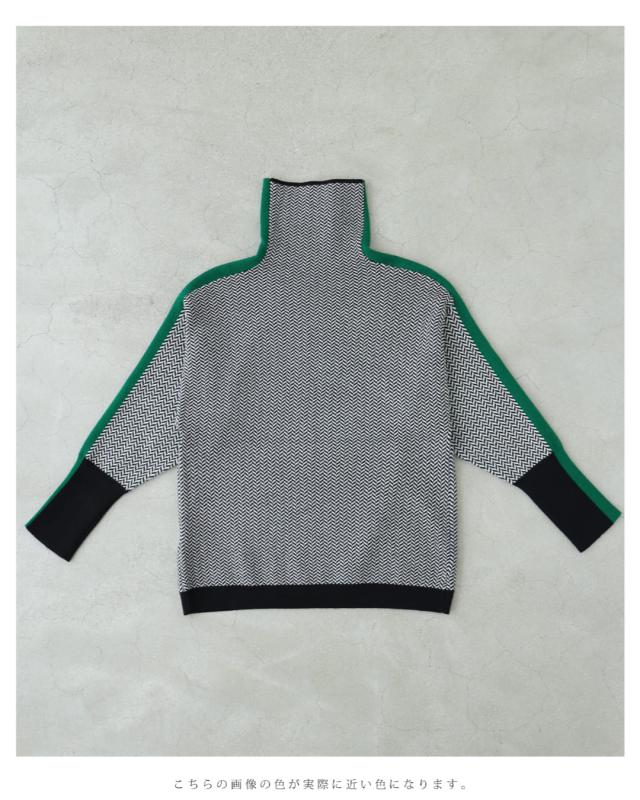 fsz00070ss 新作 新着 再入荷 CAWAII FRENCHPAVE フレンチパヴェ エレガント ベーシック カジュアル 可愛い かわいい カワイイ おしゃれ オシャレ お洒落 個性 個性的 定番 ベーシック 大人かわいい 大人可愛い 上品 女性らしい デザイン スタンダード ナチュラル きれいめ キレイめ シンプル フェミニン レディース レディースファッション 大人 ママ ミセス 30代 40代 50代 60代 首元から流れる 緑ライン ジグザグ ニット プルオーバー トップス S M L ワンサイズ フリー 小さめ 小さい 低身長 痩せ ほっそり 小柄 細身 標準サイズ 大きめシルエット 大きい ビッグシルエット ゆったり F サイズ自由 厚手 あったかい あたたかい 暖かい ぬくい 春 秋 冬 秋服 秋物 冬服 冬物 伸縮 楽ちん グリーン 緑 柄 普段着 日常使い オフィスカジュアル 仕事 会社 おでかけ 買い物 ハイネック ヘリンボーン スタイリッシュ