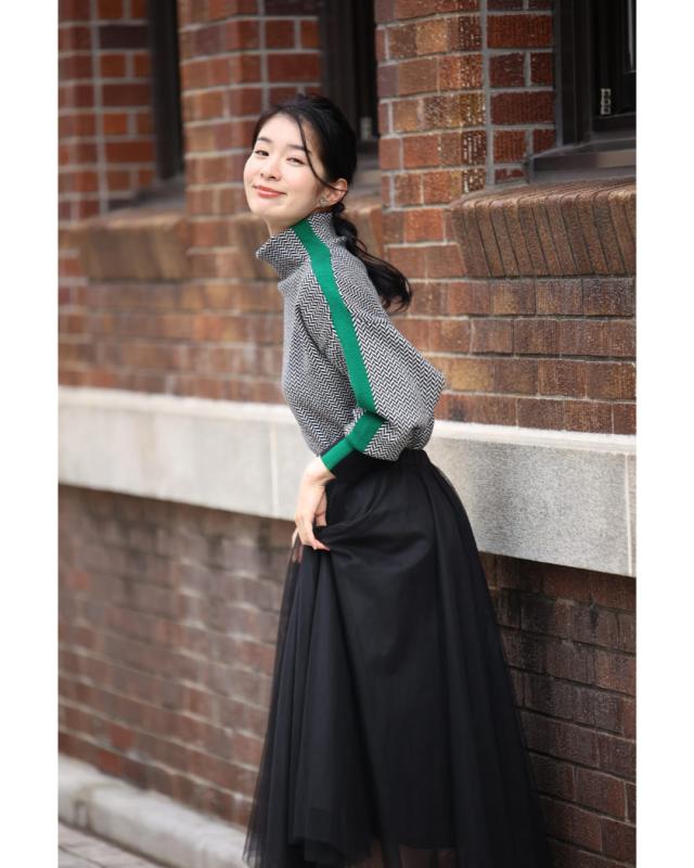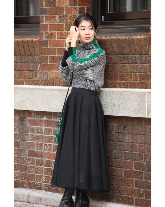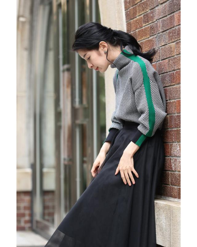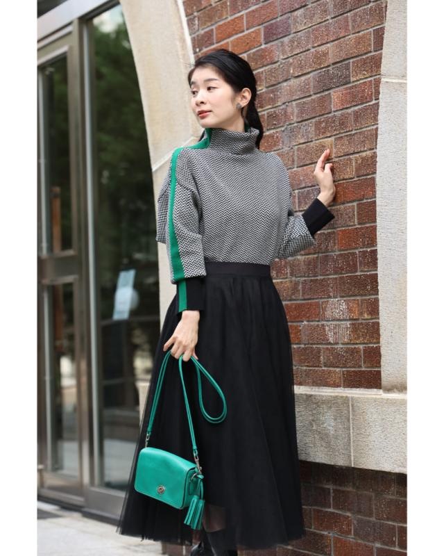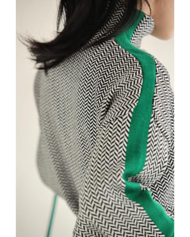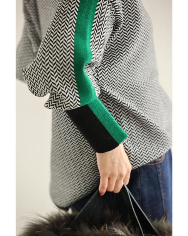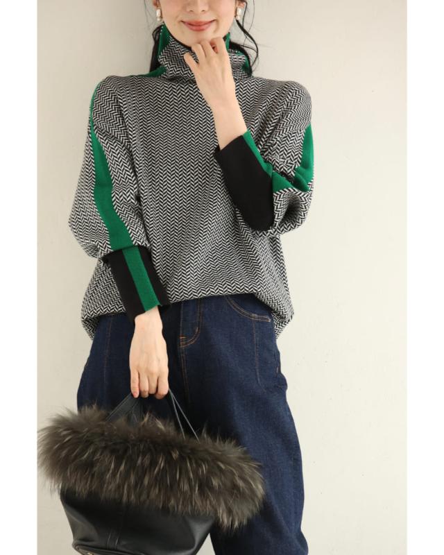 新作12月2日 首元から流れる緑ラインのジグザグニットプルオーバートップス cawaii fsz00070ss S~L対応 ハイネック ヘリンボーン柄 グリーン 伸縮 楽ちん おしゃれ 大人可愛い 暖かい 日常 仕事 レディース ファッション 大人 ママ ミセス 30代 40代 50代 60代