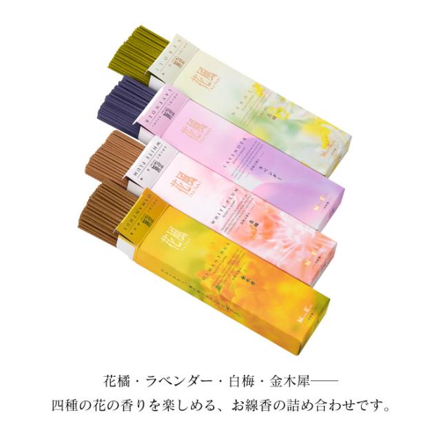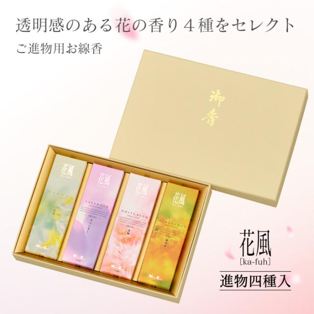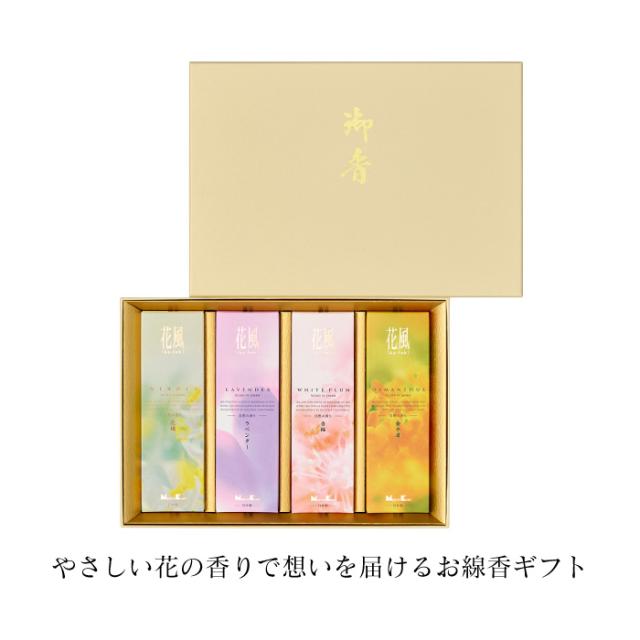 線香 ご進物用線香 花風 進物 四種入 花の香り 贈答用 生花 金木犀 白梅 ラベンダー 花橘 掛け紙 993454