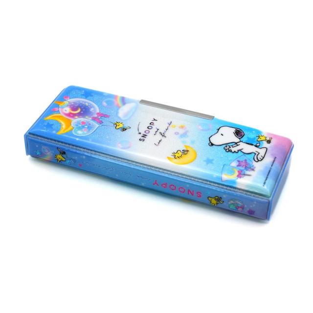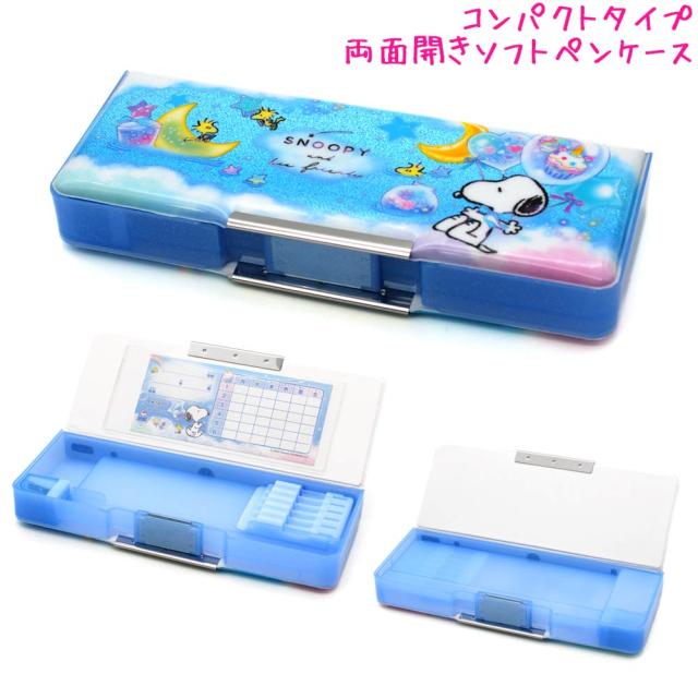 かわいいスヌーピーのデザインが目を引く、両面開きタイプのソフトペンケースです。
