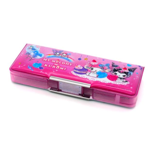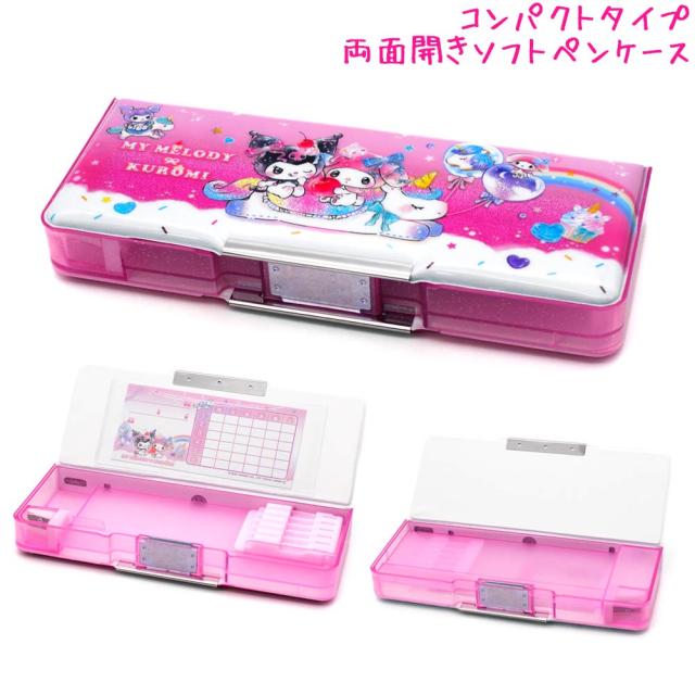 かわいいマイメロディとクロミのデザインが目を引く、両面開きタイプのソフトペンケースです。