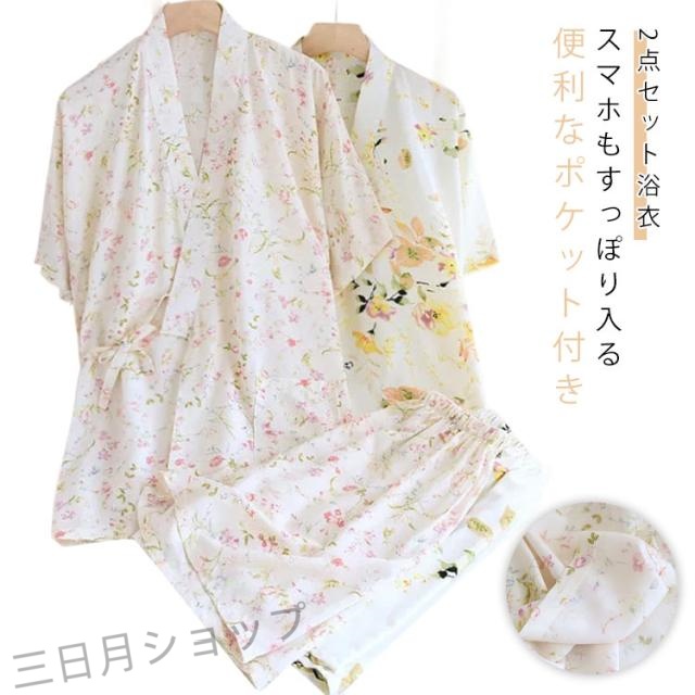 前開き ルームウェア パジャマセット 和風 甚平 寝間着 花柄 五分袖 レディース セットアップ 半袖 かわいい花柄 じんべい 夏 無地 ショートパンツ 浴衣 部屋着 春夏用 寝巻き 甚平 作務衣 女性 2点セット浴衣 薄手