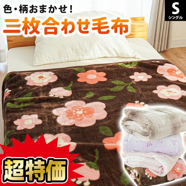 【色柄込み】毛布 シングル 2枚合わせ ブランケット 掛毛布 柄込み 色込み おまかせ 冬 あったか 合わせ毛布 お買得 掛け毛布 衿なし お得 特価 暖か 140×200