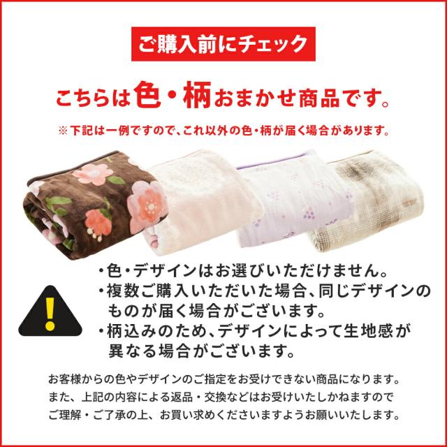 ・お財布に優しいオトクな毛布 商品を大量仕入れ、そして色・柄は当店のおまかせにし、仕分けのコスト削減をすることにより、お求めやすい価格設定にすることができました! ・二枚合わせでぬくもりたっぷり2枚の生地を重ねた”二枚合わせ毛布” 空気を含んでふんわり軽く、寒い夜もやさしく包み込んであたためます。 ・あったかフランネル生地キメの細かい毛並みのあったかフランネル素材。やわらかでソフトな気持ちいい手触りで、冬の冷えた空気の中でも優しい使い心地です。 |