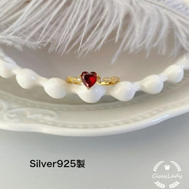 S925 レディース人気指輪 ルビー色 ハート ストーン リング 指輪 大人可愛い 大人女子 金アレ対応 重ね付け ring free size