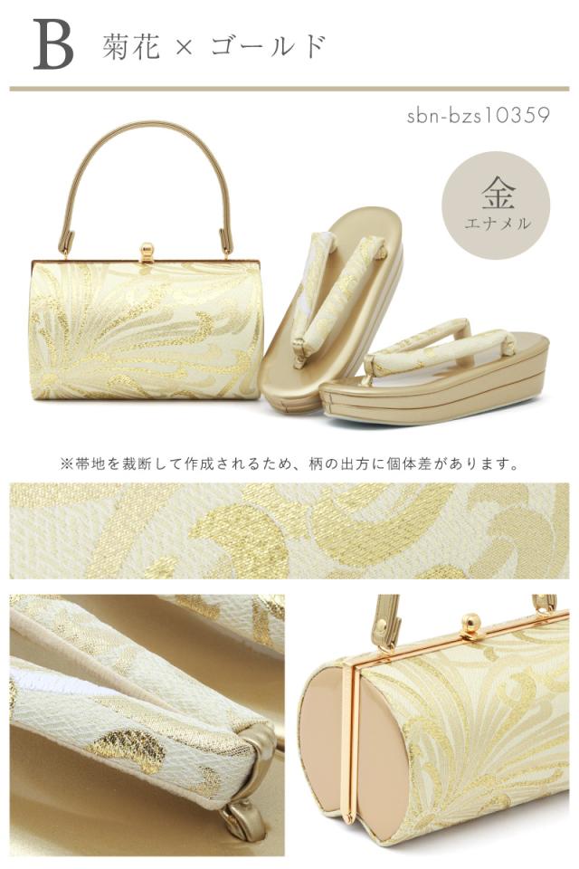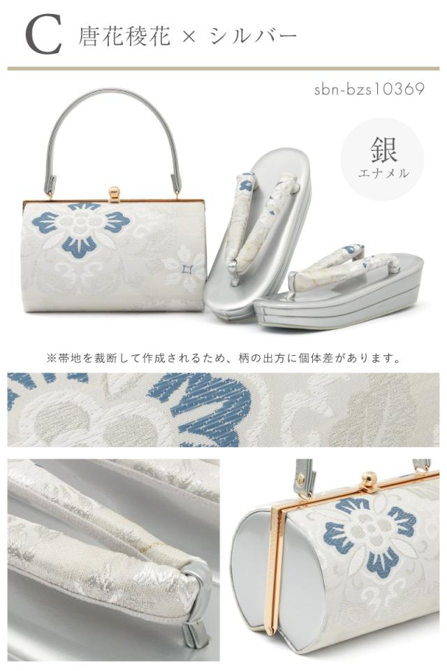 草履バッグセット 振袖用 袴姿 草履 バッグ 2点セット レディース 金 銀 黒 赤 ピンク ゴールド シルバー ブラック 2枚芯 帯地 エナメル 花 フリーサイズ 成人式 卒業式 卒業袴 送料無料