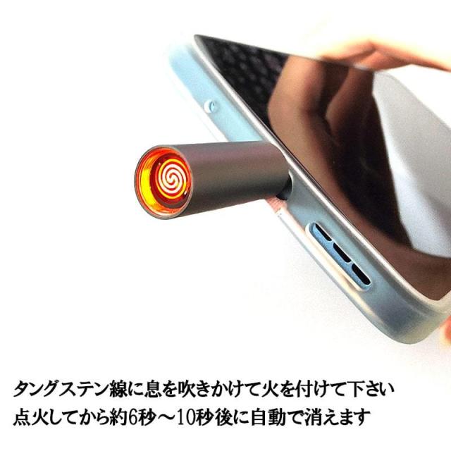 お手持ちのモバ充電口に差し込み息を吹きかけるだけで着火可能なハイテクライターです。