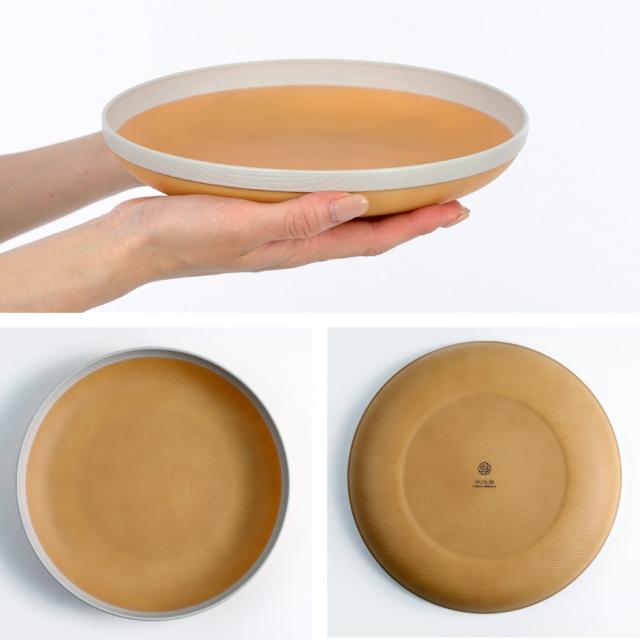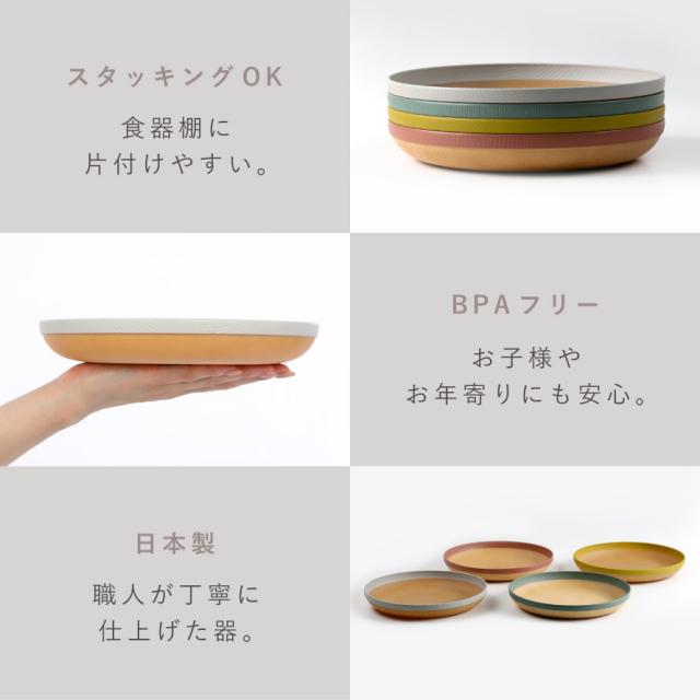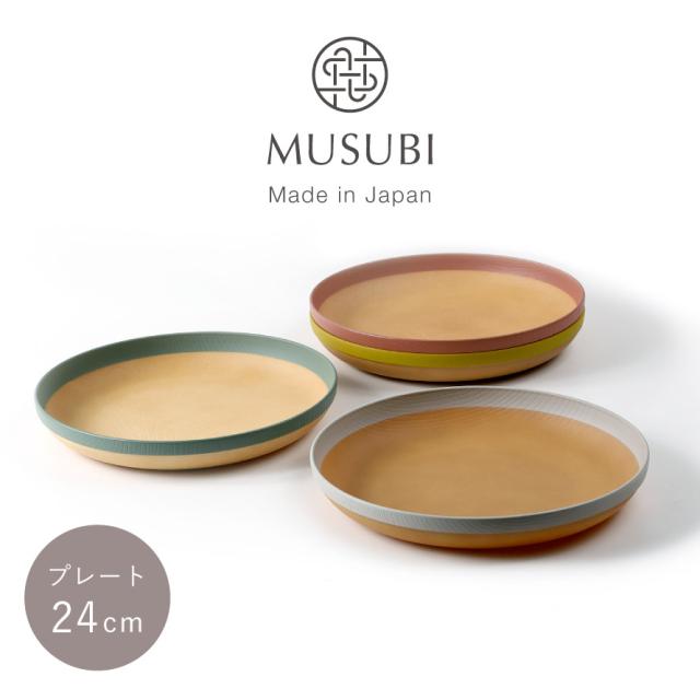 皿 プレート 24cm 割れない 食洗機対応 丸皿 食器 レンジ対応 BPAフリー 木目調 軽い 軽量 北欧 スタッキング 日本製 おしゃれ MUSUBI 塗分け プレート くすみカラー