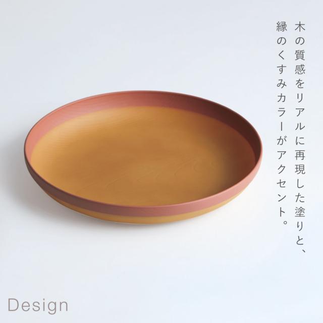 木の質感をリアルに再現した塗りと、縁に塗り分けられたくすみカラーがアクセント。匠な技を持つ漆器職人がひとつひとつ丁寧に表現した器です。