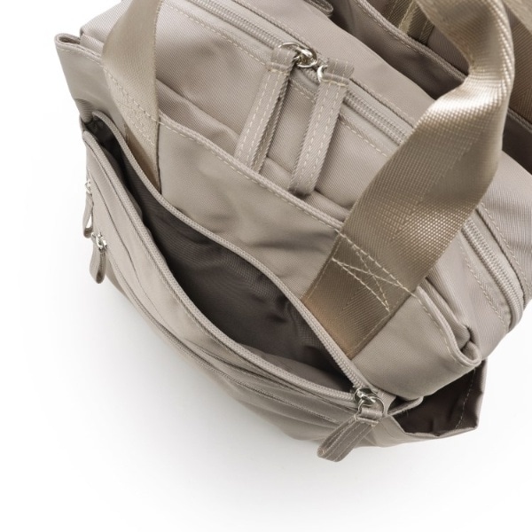 付属金具をシルバーで統一して、カジュアルにもキレイめにも合わせやすいデザインです。