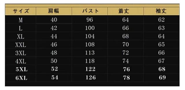 | サイズ | M L XL 2XL 3XL 4XL 5XL 6XL |