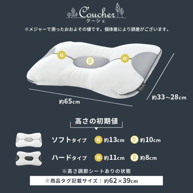 | ・快眠の決め手はまくらの「高さ」 肩こりや頭痛・不眠の原因の一つに、枕が合っていないという可能性があります。毎日高さの合わない枕で眠っていると、首や肩にどんどんストレスをため込むことになります。枕は高すぎても低すぎても身体に不具合が起こるので、 自分に合った枕の高さを知ることが大切です。 ・枕を選ぶポイントは?「高さが身体に合っている」ことの他にも、「寝返りがしやすい」、「横向きに寝ても苦しくない」、「通気性がよく頭部が蒸れにくい」ことなども枕を選ぶ際の重要なポイントです。以上の4つのポイントを抑えた枕を選びましょう。 ・クーシェは高さ調節が自由自在!クーシェは5つに分かれたポケットから中材を出し入れすることで、セミオーダー枕並みの細かな高さ調整が可能!ざっくりとした調整はウレタンシートを抜き差しするだけでOK!また、仰向け・横向きでも後頭部と頸椎を支える立体構造で自然な寝返りをサポート。特に蒸れやすい中央部と両サイドはメッシュ素材なので蒸れを逃がして快適です。 ・こだわり安眠館オリジナル西川と共同開発することで商品のクオリティの向上と低価格化を図りました。試行錯誤を重ね、「より多くの人に自分に合った枕を使って欲しいというこだわりを満たした枕ができ上がりました。店長の自信のある逸品です! | |