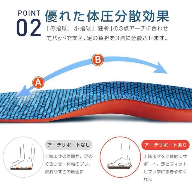 インソール 衝撃吸収 アーチサポート 偏平足 中敷き 疲れにくい スニーカー スポーツ ランニング靴 メンズ レディース 低反発 立ち仕事 ウォーキング