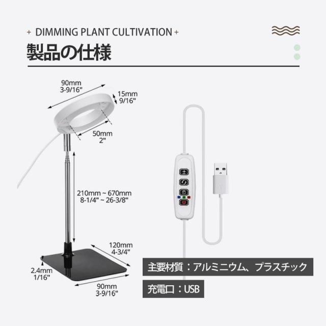 リング型植物ライト//栽培時の悩み//・栄養不足・色が悪い・日照不足 などなどそんなお悩みを解決します!・インドアグリーンの効果・インドアグリーンとは、屋内で植物を飾り、育てて楽しむことです。植物が持つ温熱環境調整・快適性向上効果、心理的効果、視覚疲労緩和・回復効果、空気浄化効果による快適性の向上が効果として謳われています。