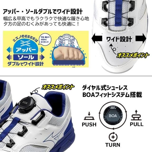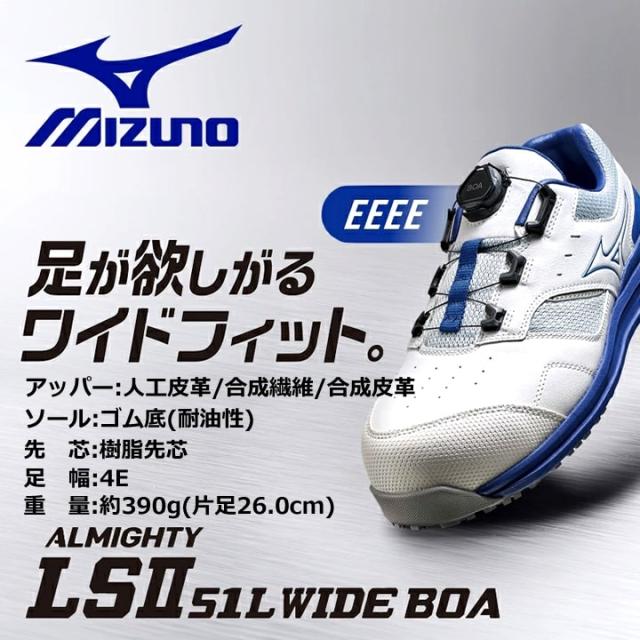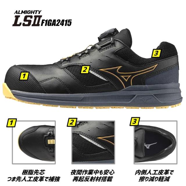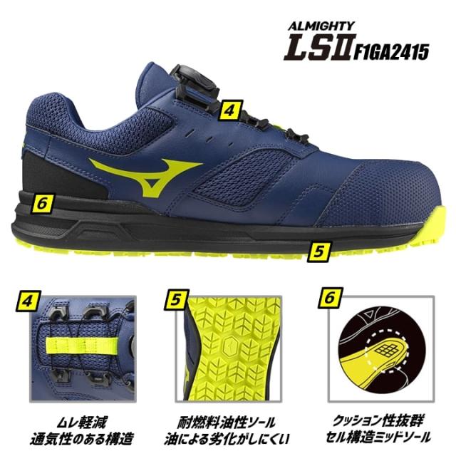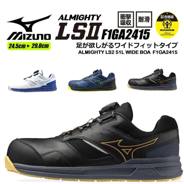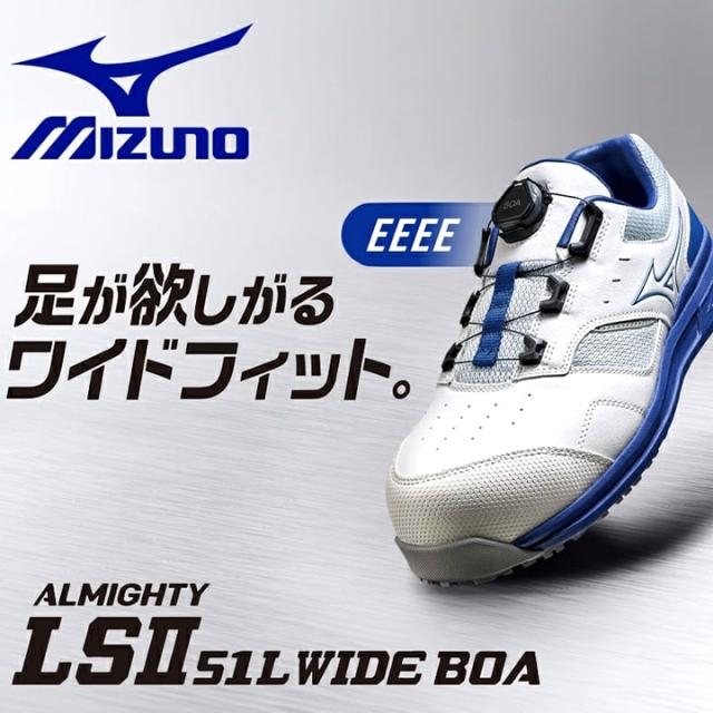 【即日発送】安全靴 ミズノ MIZUNO ローカット F1GA2415 オールマイティ LSll 51L ダイヤル式シューレース BOA スニーカー ワイド設計 4E 樹脂先芯 再起反射材 クッション性 耐滑 JSAA A種 セーフティーシューズ 衝撃吸収 軽量 MIZUNO 作業靴