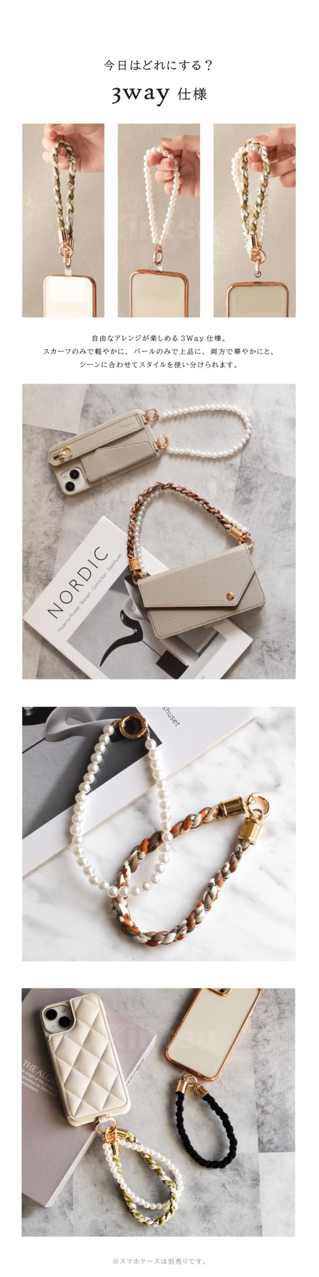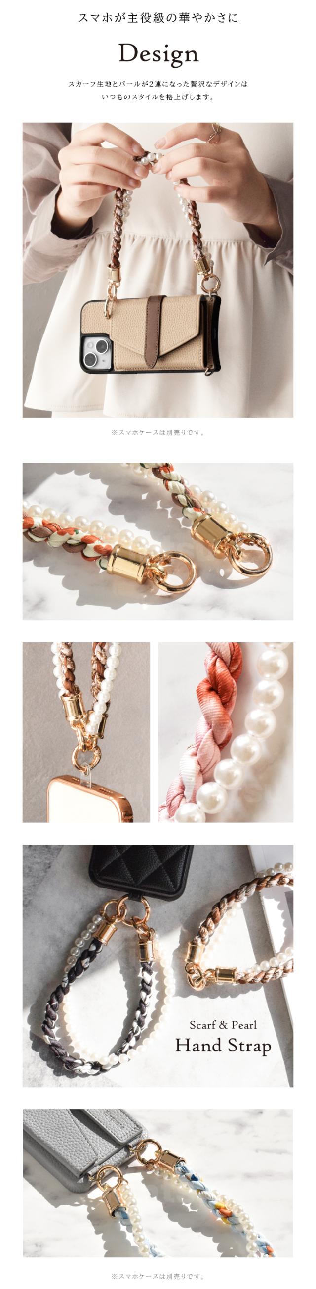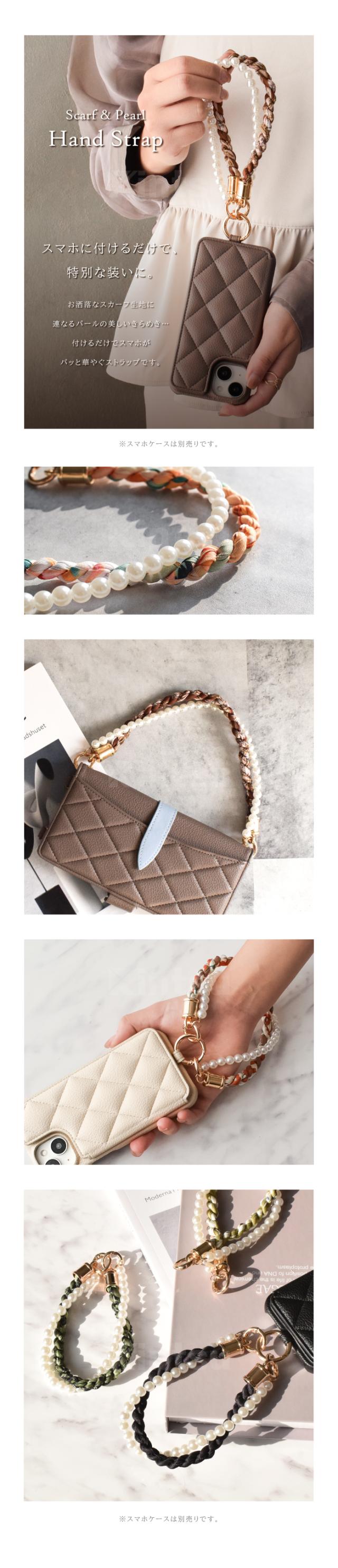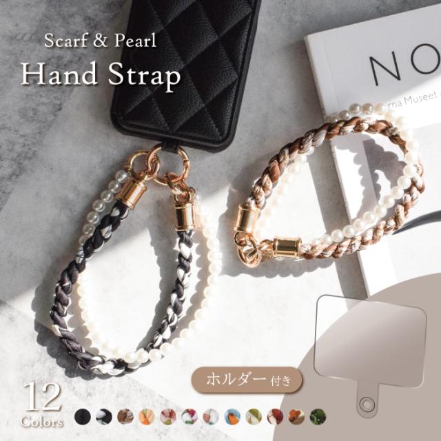 スマホ ストラップ 手首 ハンドストラップ 可愛い スカーフ パール ショートストラップ 携帯ストラップ 落下防止 紛失防止 スマホストラップ ホルダー付き ストラップホルダー