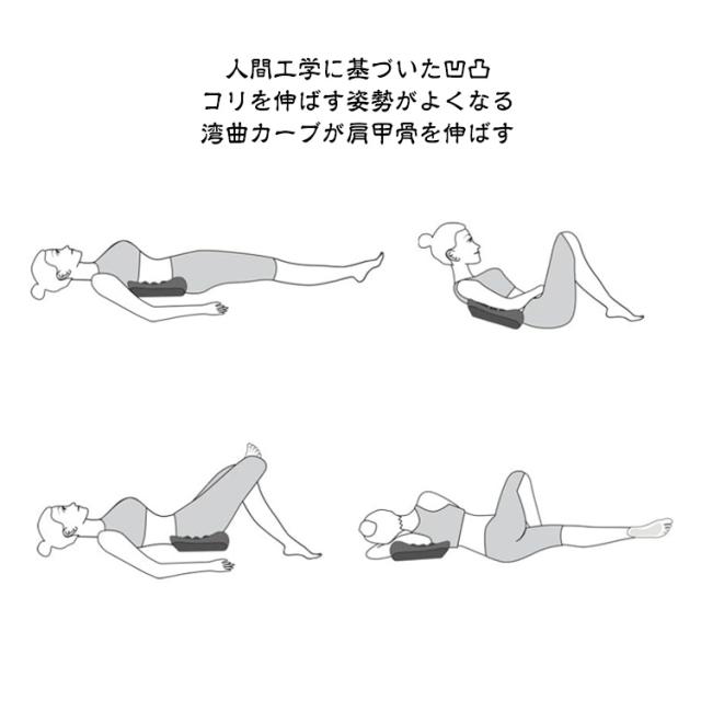 - 肩甲骨まわりの慢性的なこりに悩んでいて購入しました。このピローを使うと、背中にぴったりフィットして、無理なく肩甲骨を「はがす」ようなストレッチができます