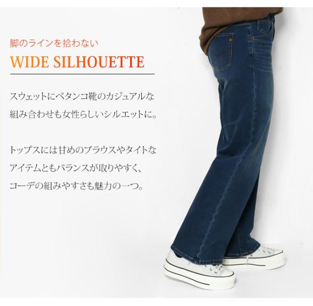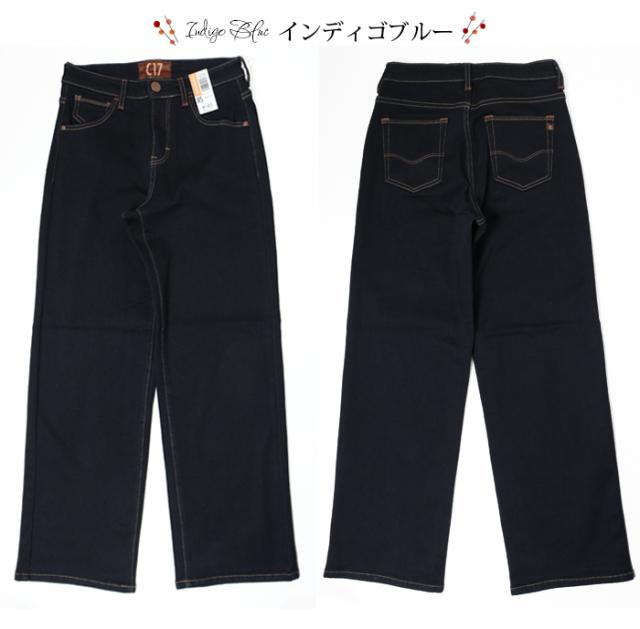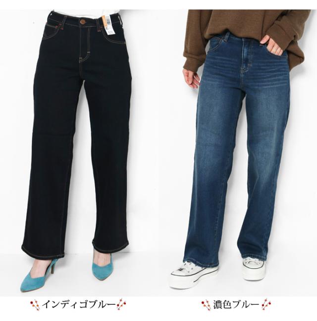 C17 エドウィン 暖パン CW345 ワイドパンツ デニム ジーンズ レディース 冬用 パンツ 裏起毛 ブランド EDWIN 暖かい ストレッチ 楽 インディゴブルー ワンウォッシュ 濃色ブルー シンプル きれいめ 股上深め