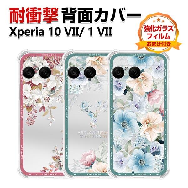SONY Xperia 10 VII Xperia 1 VII カバー ケース 耐衝撃 衝撃に強い TPU素材 保護ケース カラフル 可愛い 花柄 CASE おしゃれ ソフトカバー 衝撃防止 四隅の衝撃吸収補強 鮮やかな 多彩 人気 透明 エクスペリア 1 VII 10 VII 背面カバー 強化ガラスフィルム おまけ付き