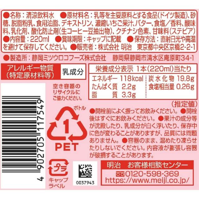 明治 コーヒー いちご フルーツ 220ml PET 24本 1ケース 液体 ペットボトル pet 飲料 ドリンク 飲み物 常温保存 meiji コーヒー ミルク感 いちご 酸味 甘さ 送料無料 乳飲料 いちごオレ コーヒー飲料 清涼飲料水 ドリンク