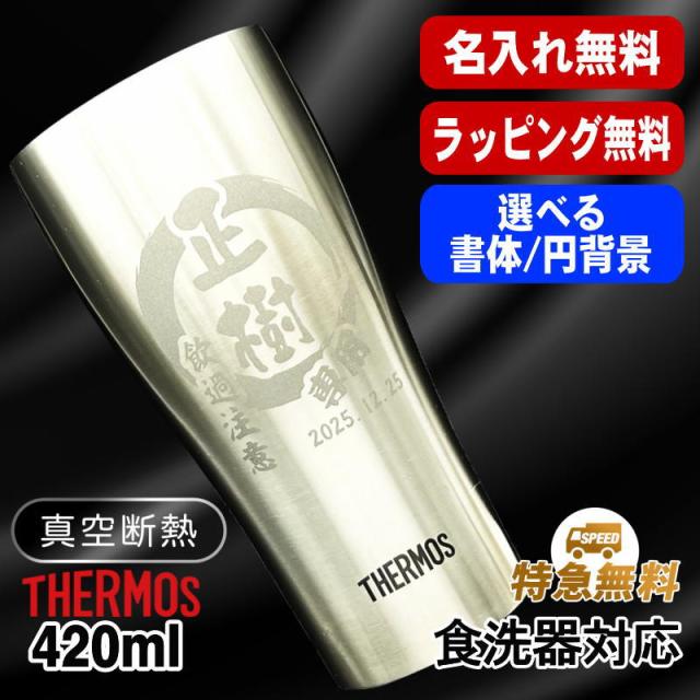 名入れ タンブラー サーモス 名前入り プレゼント 真空断熱 保温 保冷 食洗器 対応 ステンレス 彫刻 刻印 グラス コップ ビールグラス 父の日 母の日 還暦祝い 退職 誕生日 結婚祝い 実用的 ネーム入れ 男性 女性 バースデー ギフト 送料無料 420 ml JDY-420 円背景 EH20