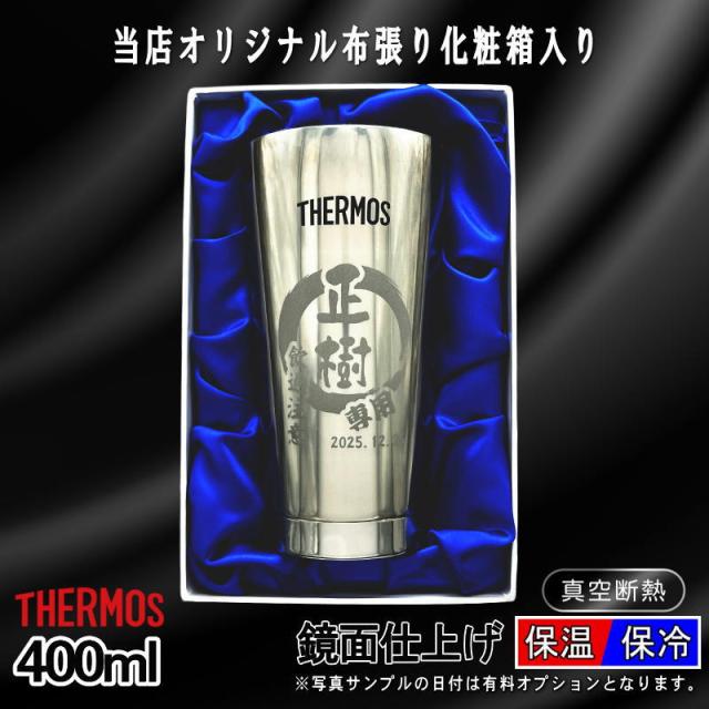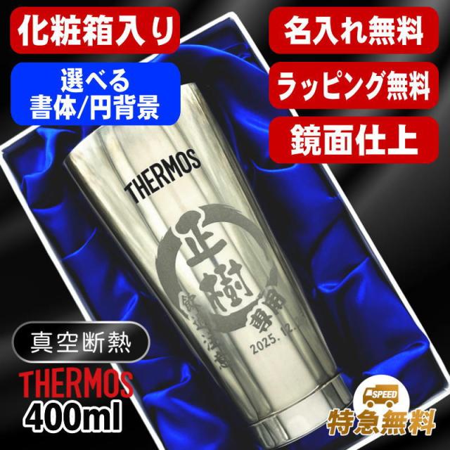 【化粧箱入り】 名入れ タンブラー サーモス 名前入り プレゼント 真空断熱 保温 保冷 ステンレス 彫刻 刻印 グラス コップ おしゃれ ビールグラス 父の日 母の日 還暦祝い 退職 誕生日 祝い 男性 女性 バースデー ギフト 送料無料 400ml 光沢 JMO-GP2 SL 単品 円背景 EH23
