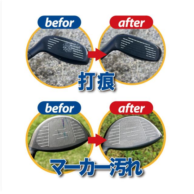練習場でボールを打った後に残る、アイアンやドライバーのフェースの汚れを効率的に除去できます。