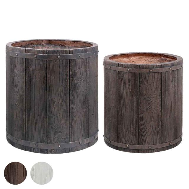 プランター ファーバー 木調FRPプランター 幅40cm 幅50cm 丸型 大小2個セット ( プランターカバー ラウンド 植木鉢 鉢 底穴 屋外 外 家庭菜園 寄せ植え ポット 鉢カバー 鉢植え 屋内 円形 大型プランター 水抜き穴 大型 花 )