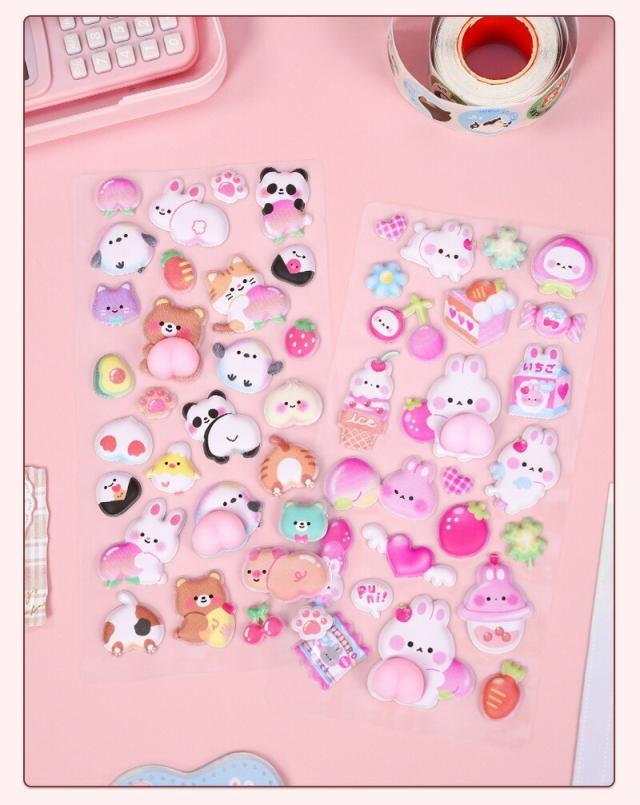 即納 2枚セット ぷにぷに おしりシール 新作 送料無料 スクイーズ シール 可愛い キャラクター うさぎ くま パンダ クマ ねこ ご褒美シー ル 立体 泡ステッカー 3D ステッカー ふわふわ もちもち 人気ある