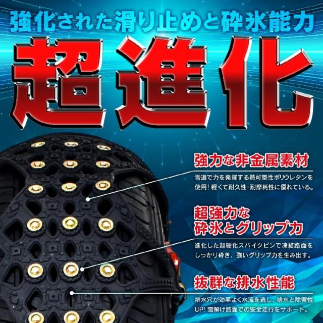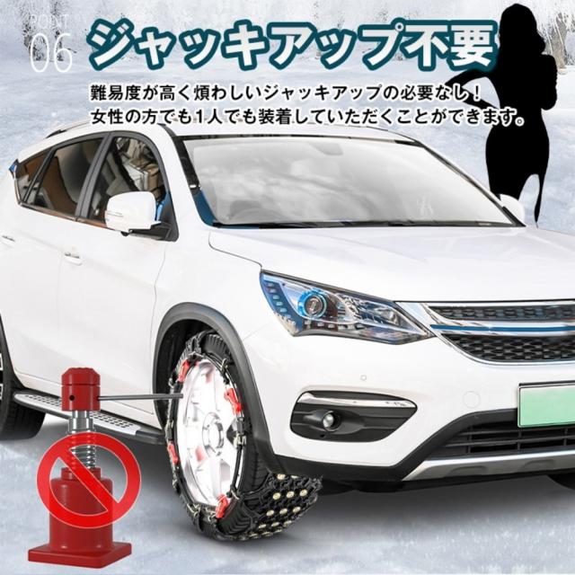 タイヤチェーン スノーチェーン 2個セット 非金属 滑り止め 耐磨耗 取り付け道具付き ジャッキアップ不要 碎氷とグリツプカ 安全走行 碎氷?排雪 雪道 凍結 雪対策 ee107