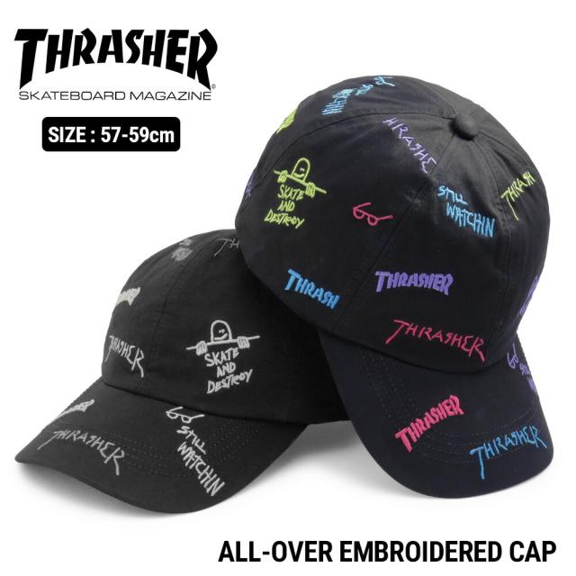 THRASHER スラッシャー 総柄刺繍キャップ DW1896 帽子 ストリート ブランド おしゃれ モノトーン マルチカラー 刺しゅう 定番 人気 ギフト プレゼント