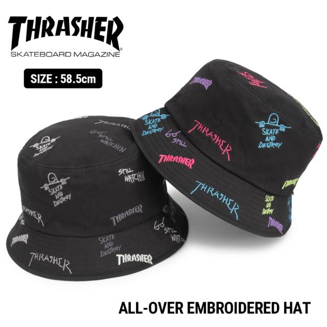 THRASHER スラッシャー 総柄刺繍ハット DW1897 帽子 ストリート ブランド モノトーン マルチカラー おしゃれ バケットハット バケハ ギフト プレゼント