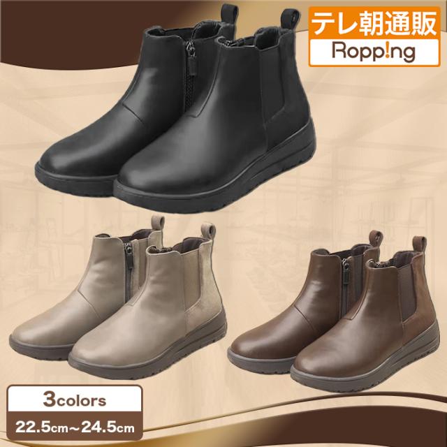 マドラス社製 ゆったりサイドゴアショートブーツ 防水モデル じゅん散歩 テレビ朝日 テレ朝通販 ロッピング スエード調 美脚効果 サイドファスナー madras