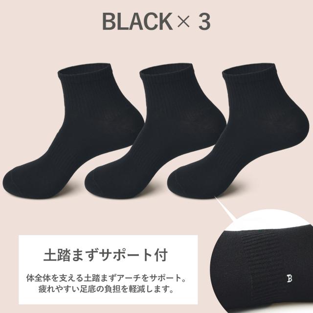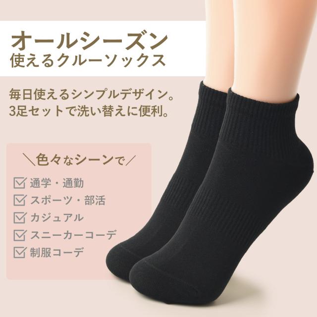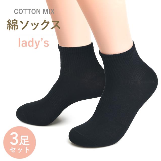 靴下 レディース 3足 セット 無地 綿 アンクル丈 ソックス カジュアル ビジネス 通学 スクール スポーツ 学校 部活 黒 くつ下 丈夫 22-25cm くつした 女性用 敬老の日 母の日 SC1 MC 7006