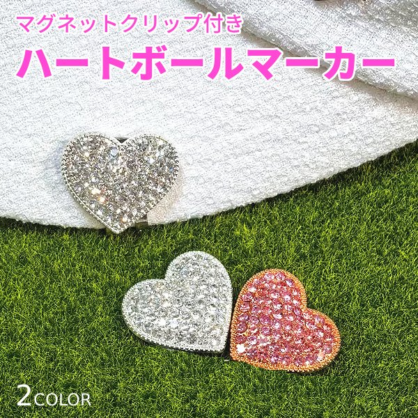 ゴルフ用品 ラインストーン ハート ボールマーカー キラキラ メタル ハットクリップ マグネット 目印 ピン マーカー 磁石 景品 かわいい ギフト バイザー キャップ 携帯 持ち歩き ラウンド用品 識別