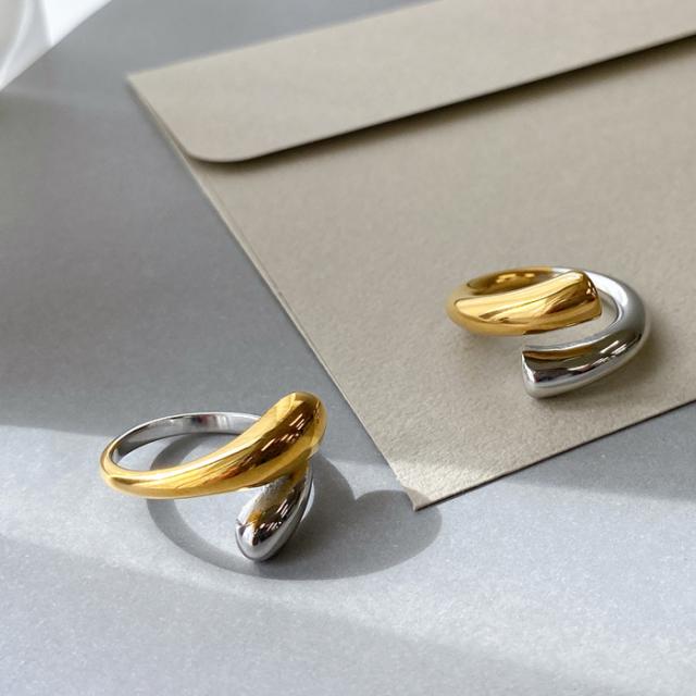 送料無料 SGカラードロップステンレスフォークリング 金属アレルギー 指輪 リング バイカラー コンビカラー MIX ミックス シルバー ゴールド サージカルステンレス アレルギー対応 つけっぱなし レディース オープンリング