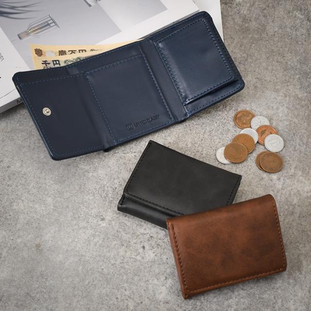 新作 UNITED CLASSY ボックス型小銭入れ 三つ折り 財布 メンズ アンティーク調 フェイクレザー 三つ折り財布 コンパクト 小さめ 札入れ 小銭入れ カード入れ ミニ財布 3つ折り スリム 男性 紳士