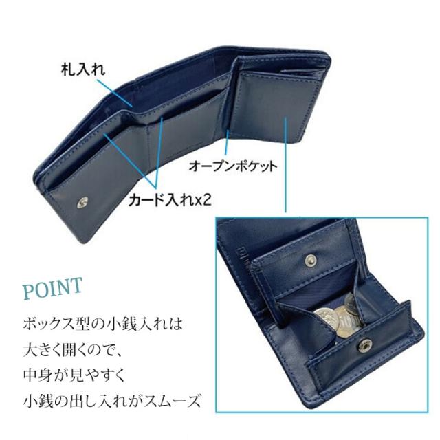 ボックス型小銭入れを備えた三つ折り財布