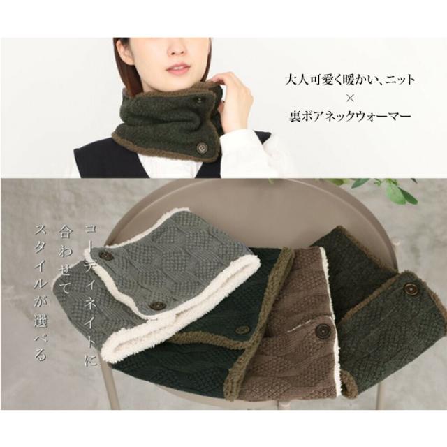 大人可愛く暖かい、ニット×裏ボアネックウォーマー