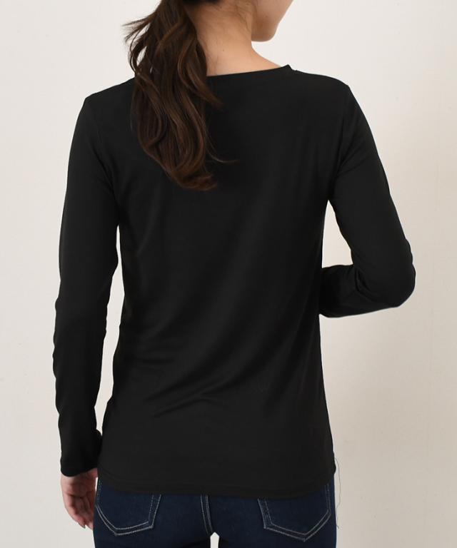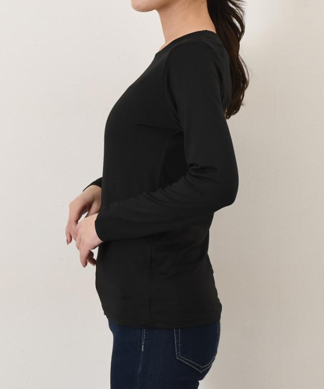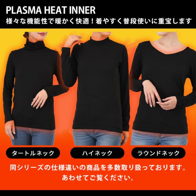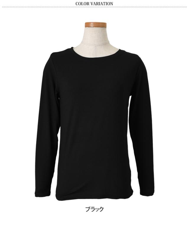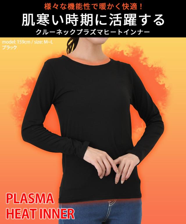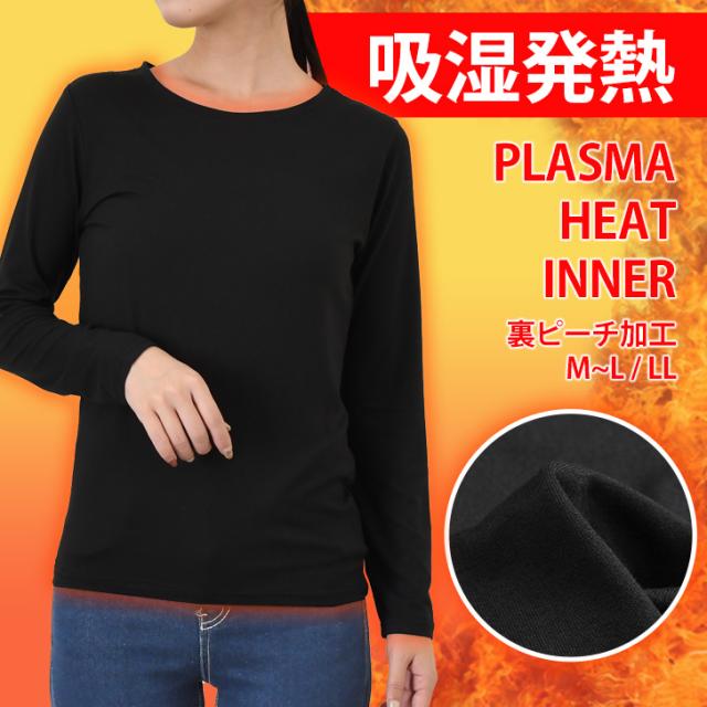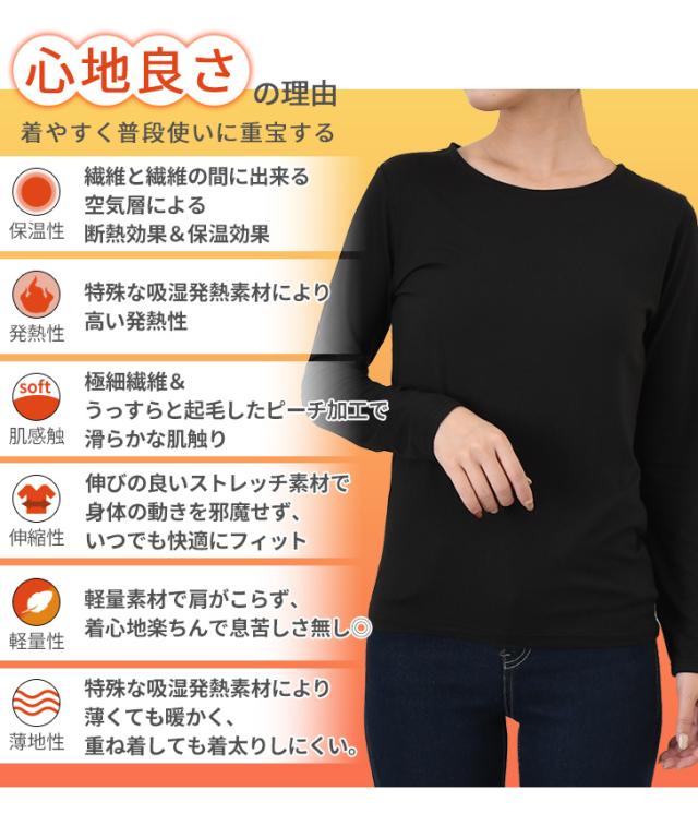 新作 裏ピーチ起毛ストレッチクルーネックプラズマヒートインナー レディース トップス あったかインナー 長袖 薄手 秋冬 極細 裏起毛 大きいサイズ 大きめ 防寒 暖かい あったか カットソー 下着 肌着 丸首
