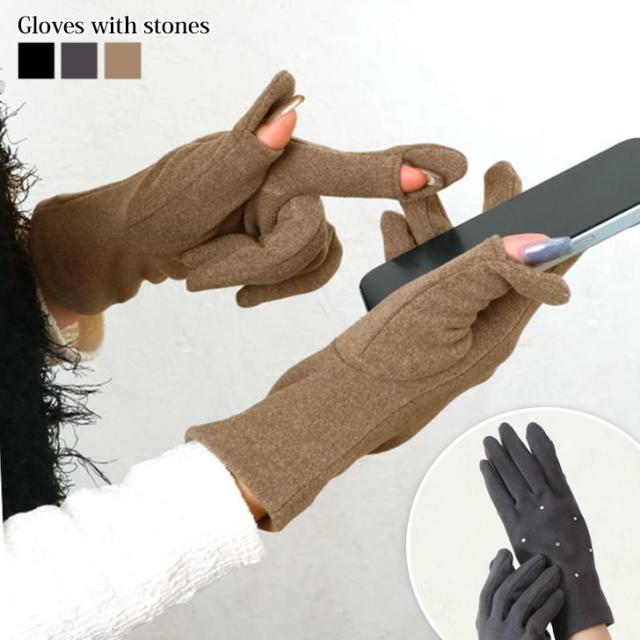 新作 スマホ対応 ストーン付き グローブ レディース 手袋 かわいい 防寒 暖かい あったか 5本指 指切り 秋冬 グローブ スマホ手袋 ハンドウォーマー おしゃれ スマホ 操作 通勤 スリム 細身 プレゼント