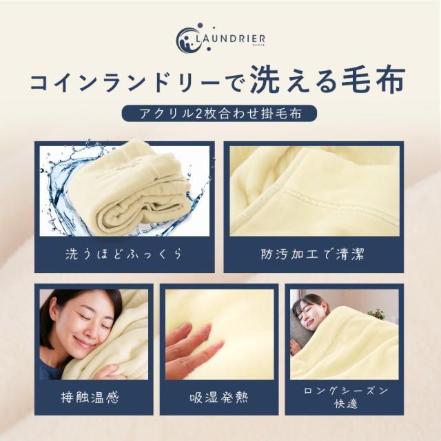 西川 ランドリエ 毛布 2枚合わせ毛布 日本製 洗える コインランドリー 国産 泉大津 吸湿発熱 防汚加工 掛け毛布 冬 西川株式会社 乾燥 節電