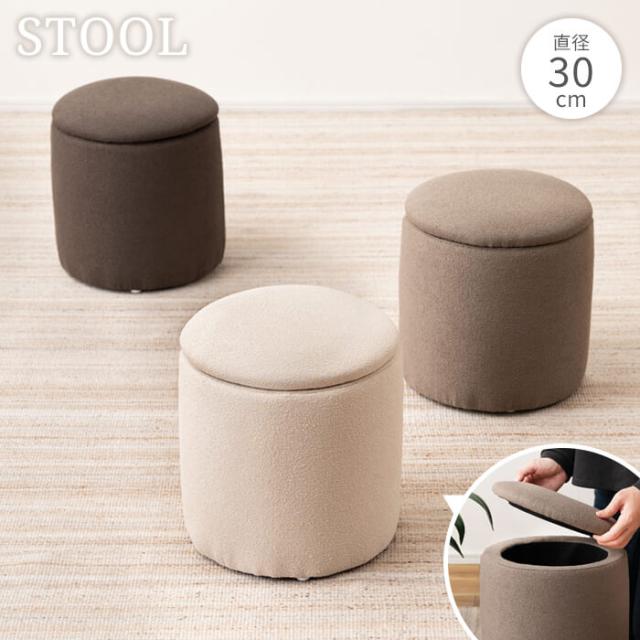 座れる フタ付き 収納スツール 30cm Sサイズ スツール 収納 丸 収納ボックス 足置き オットマン イス チェアー ふた付き 収納BOX コンパクト おしゃれ 玄関 腰掛け ベンチ 軽量 円形 丸型 円 ブラウン ベージュ 新