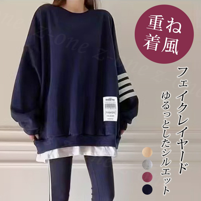 トレーナー サイドスリット カーブした スウェット レディース カジュアル カーブしたフロント プルオーバー トップス 秋新作 長袖 ナチュラル 体型カバー 無地 tシャツ ゆったり パーカー Tシャツ 肌触りいい