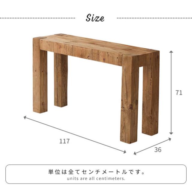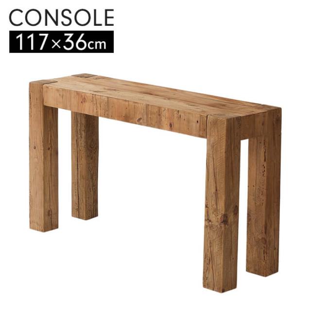 コンソールテーブル 幅117cm テーブル 長方形 古材 パイン材 サイドテーブル ディスプレイラック オープンラック 木製 天然木 シンプル ナチュラル おしゃれ 北欧風 レトロ ヴィンテージ